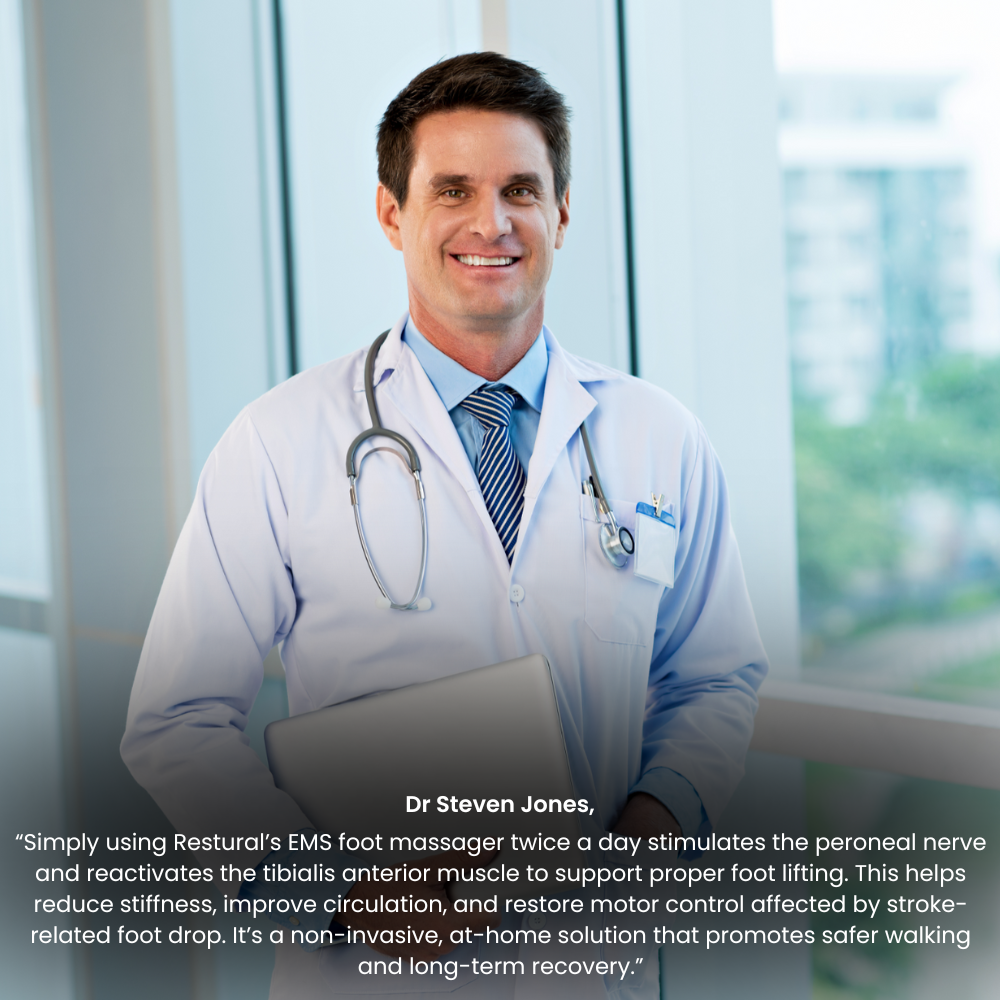 Our EMS device is painless and easy to use. It stimulates the nerves and muscles with gentle, adjustable pulses. Feel comfort and relief without the stress of traditional braces or painful therapies. Enjoy a smoother, pain-free walk.
